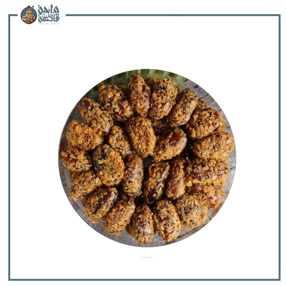 إذا تبي تمر محشي بالجوز يخلّيك تقول "يا زين هالحشوة اللي تجمع بين الحلاوة والكرنش"، فأنت قدام التحفة: تمر مع جوز الهند الفاخر اللي محشو لوز محمص كريمي ومغطى بجوز هند محمس يذوب بالفم… تمر محشي جوز سعودي أصيل، حبة طرية ممتلئة، لونها ذهبي مغطى أبيض يهبل، وقوامها يجمع الطري بالمقرمش، مباشرة من أجود التمور اللي نختارها بعناية. هذا مو أي حلوى، هذا تمر محشي بالجوز يرمز للضيافة السعودية ويستاهل مكانه على كل مائدة!